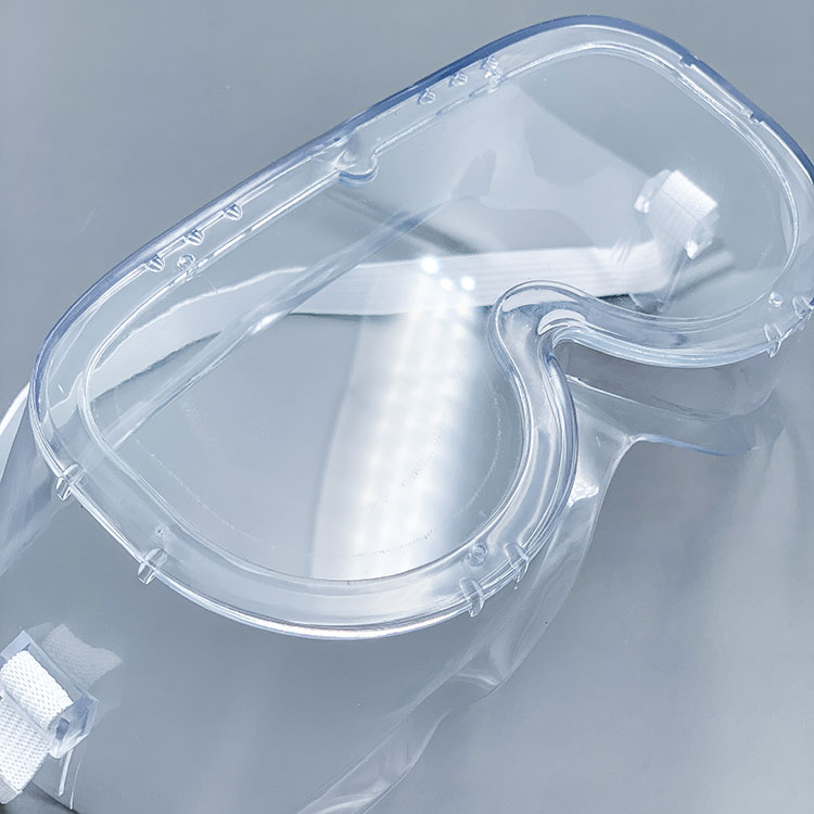 Goggles (ໂດຍບໍ່ມີຂຸມລະບາຍອາກາດ) Performance: It is used for protection in the detection and treatment of medical institutions, blocking body fluids, blood splashes or splashes