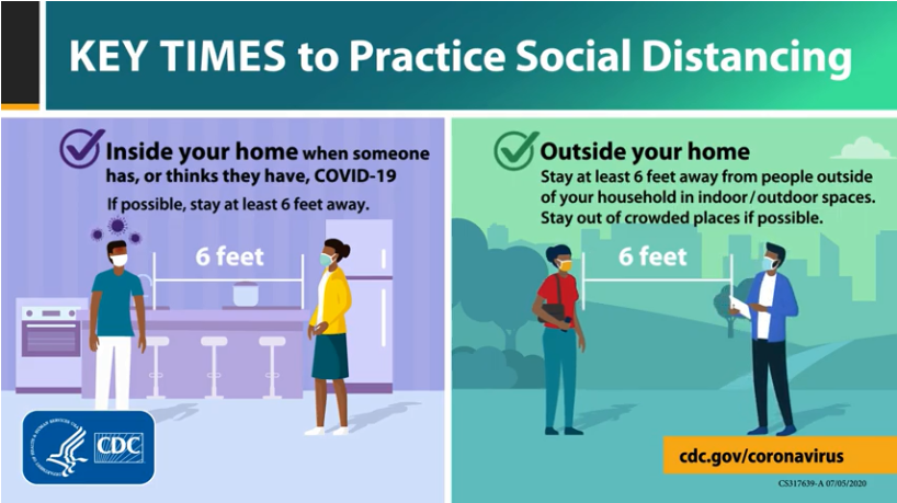 ໃນຂົງເຂດທີ່ມີພະຍາດລະບາດຮ້າຍແຮງ, ກິດຈະ ກຳ ທາງສັງຄົມທີ່ປອດໄພທີ່ສຸດແມ່ນຜ່ານການສົນທະນາທາງວິດີໂອຫຼືການສື່ສານສື່ສັງຄົມ; ອັນທີສອງ, ເມື່ອເຕົ້າໂຮມກັນ, ພະຍາຍາມກິນເຂົ້າໃນບ່ອນທີ່ແອອັດ ໜ້ອຍ ເພື່ອຫລີກລ້ຽງຝູງຊົນທີ່ແອອັດ. ໃນທີ່ສຸດ, ເມື່ອຍ່າງແລະອອກ ກຳ ລັງກາຍຢູ່ຂ້າງນອກ, ດອນ€€™t ເຕົ້າໂຮມກັນແລະເລືອກເອົາສະຖານທີ່ເປີດທີ່ມີຄົນ ໜ້ອຍ ສຳ ລັບອອກ ກຳ ລັງກາຍ.